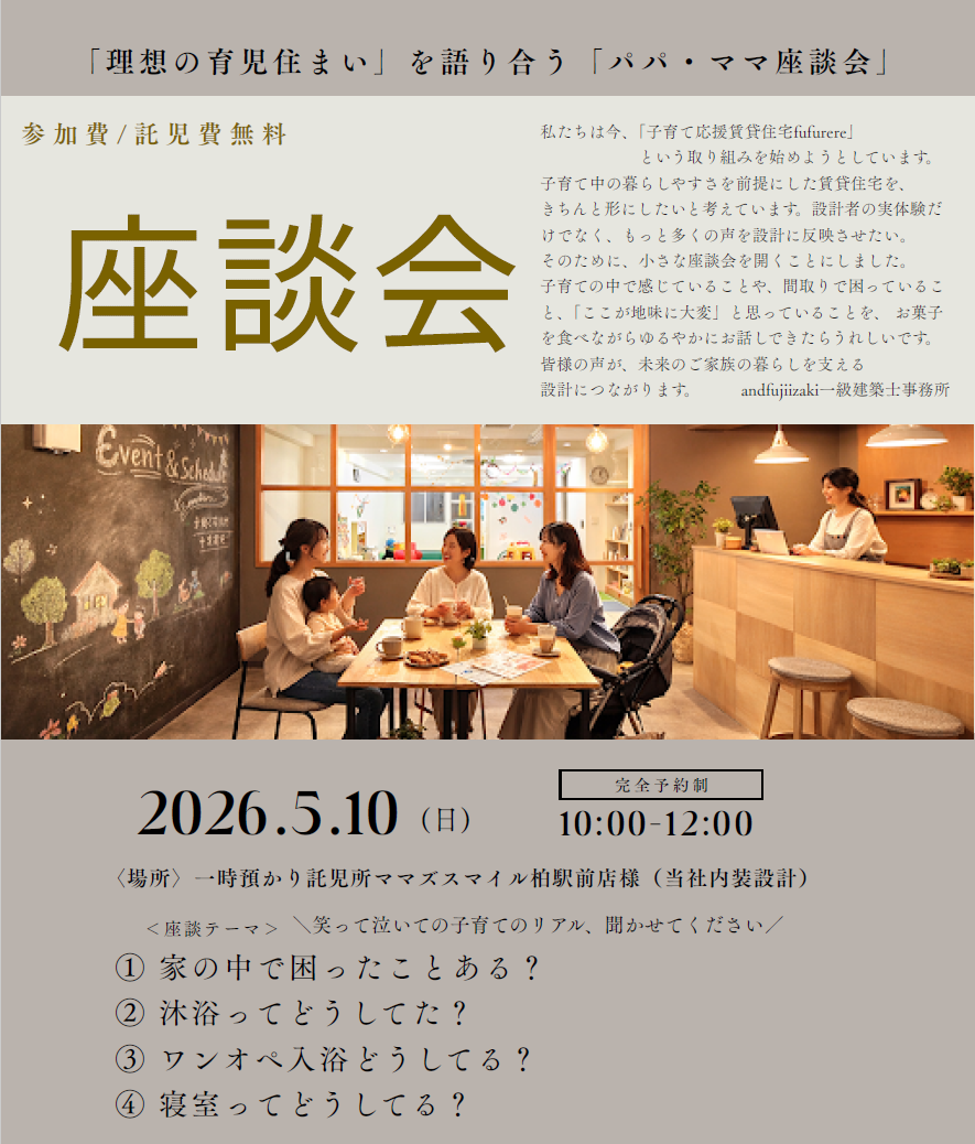 2026/5/10@柏駅前 開催!!「理想の育児住まい」を語り合う、「パパ・ママ座談会」 参加者募集中です